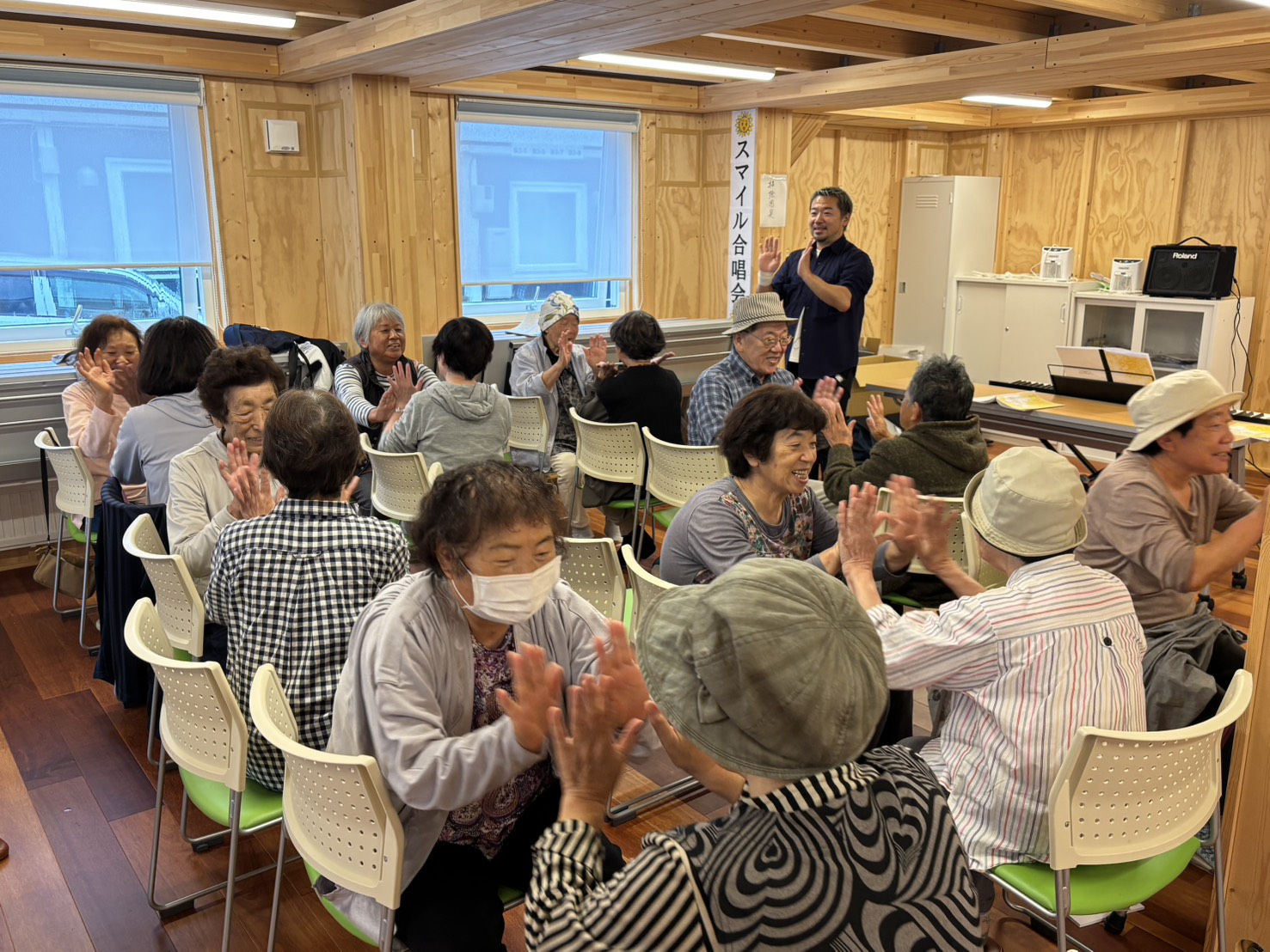 しかし、合唱会にご参加された皆様は明るく笑顔があふれ、ボランティア合唱会の開催自体が初めてとは思い盛り上がりになりました。今回、この合唱会の開催が被災された皆様にとっていかに有意義な会であるか、実感することができました。